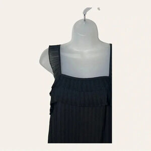 DETAILS: DRY CLEAN ONLY; ACCORDION LIKE MATERIAL; RUFFLES; FULLY LINED; STRAPS SLEEVELESS