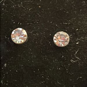 0.5” silver tone cubic zirconia dainty solitaire stud earrings