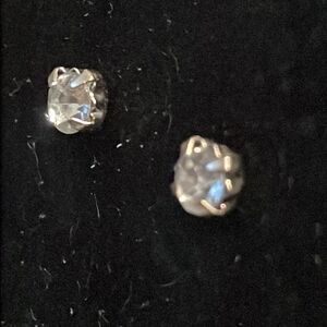 0.5” silver tone dainty solitaire cut cubic zirconia stud earrings
