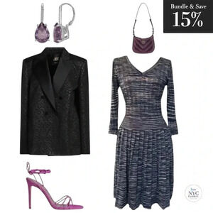 #JustTaylorDress #MetallicDress #FitAndFlare #KnitDress #HolidayStyle #OfficeWear #WinterFashion #PartyDress #PurpleDress #ShimmerStyle #3QuarterSleeveDress #PoshmarkFinds #ClosetGoals