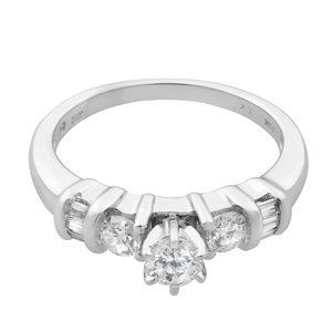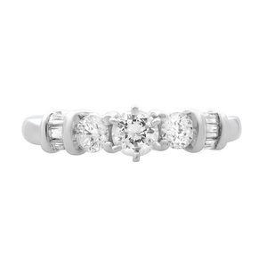 0.50Cttw Round & Baguette Cut Diamond Engagement Ring 14K White Gold Size 7