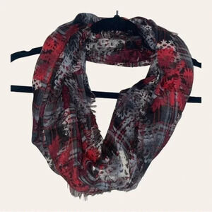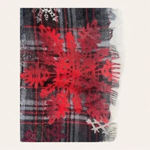 0514. Infinity WINTER THEME SCARF WHITE GREY AND RED SNOWFLAKES,