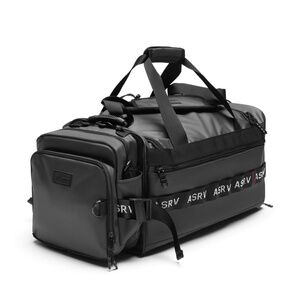 Large 50L duffle bag designed for travel with waterproof fabrication, sectioned storage, and ultra durable trims. Detachable shoulder bag uses soft-touch velcro and Fidlock® magnetic buckle for easy removal. External zip pockets, padded iPad slot, neoprene water bottle slot, and thick webbing strap otter additional storage. Left side teatures shoe compartment with anti-odor strip. Shoulder strap easily transfers from duffle to shoulder bag.