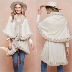 059 Luxurious Vegan Fur Cape Cardigan Sweater