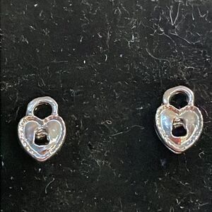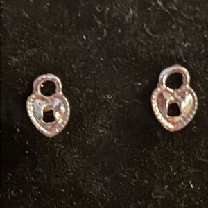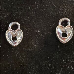 0.5” Minimalist dainty silver tone heart shaped lock stud earrings w/keyhole