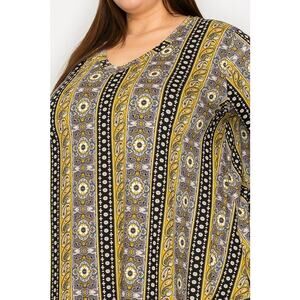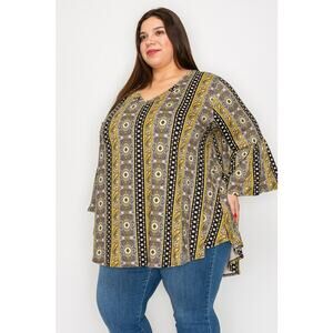 060 Curvy Lovey V-Neck Paisley Multi Print Tunic Top With Ruffle Sleeves Yellow