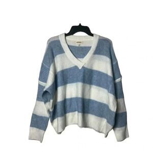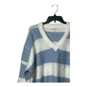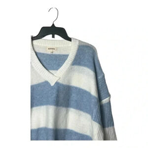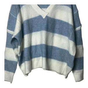 0625. ADORA KNITTED LONG SLEEVE SWEATER STRIPES SIZE M/L BABY BLUE/WHITE COLOR