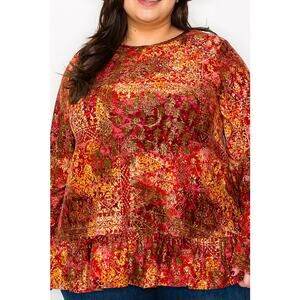 064 Curvy Lovey Boho Glitter Multi Print Frill Hem Tunic Top in Red