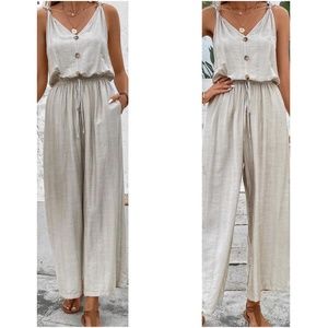 069 Solid Button Detail Wide Leg Casual Jumpsuit