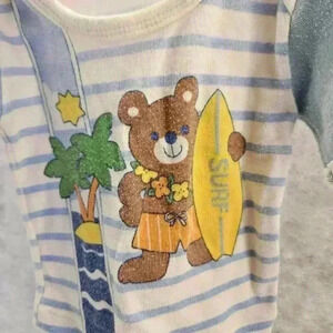 0-6mo TShirt With Surfing Bear Blue White Vintage Kids Dolls Or Stuffed Animals