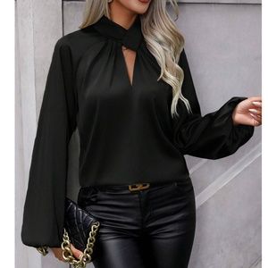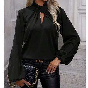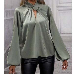 07 Classic Twist Detail Cut out Satin Long Sleeve Top