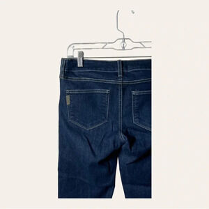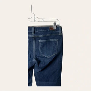 0706.‎ PAIGE PEG SKINNY JEANS DARK WASH IN COLOR RAW HEM SIZE SEE MEASUREMENTS