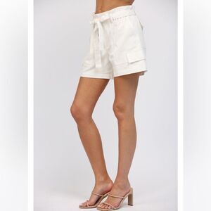 071. WAIST TIE DETAIL WITH BACK POCKETS SHORTS- OFF WHITE