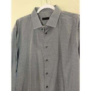 14th & Union Trim Fit Button Front Dress Shirt Geometric Print Grey/White XL