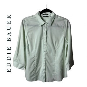 0720. EDDIE BAUER BUTTON UP WRINKLE RESISTANT TOP COLLAR SIZE LARGE MINT GREEN