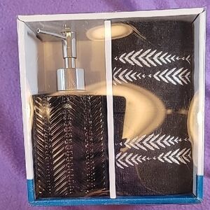 0721. 100% Cotton ~ 2 Fingertip Towels & A Beautiful Soap Dispenser