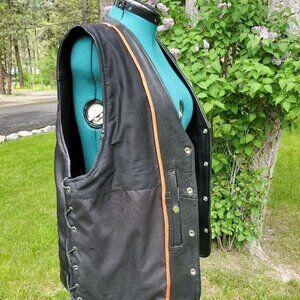 0742. NEW!!!! Genuine Leather Riding Vest in Black w/2 ~Concealed Carry Pockets