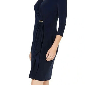0756. CHARTERS CLUB MIDI DRESS 3/4 SLEEVE NAVY BLUE IN COLOR SIZE XLARGE