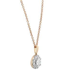 This beautiful diamond pendant necklace is a must have for your jewelry collection. Crafted in fine 14K yellow gold. It features a center prong set diamond weighing 0.50 carat with tiny diamonds in a halo setting giving an illusion of a bigger stone with cuban link chain. Total diamond weight: 0.75 carat. Diamond quality: color H-I and clarity VS-SI. Necklace length: 18 inches. Pendant size: 9mm. Total weight: 3.00 grams. Comes with a presentable gift box.