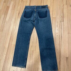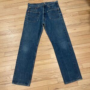 **Features:** Button fly closure, reverse patch pocket detail, authentic rigid denim