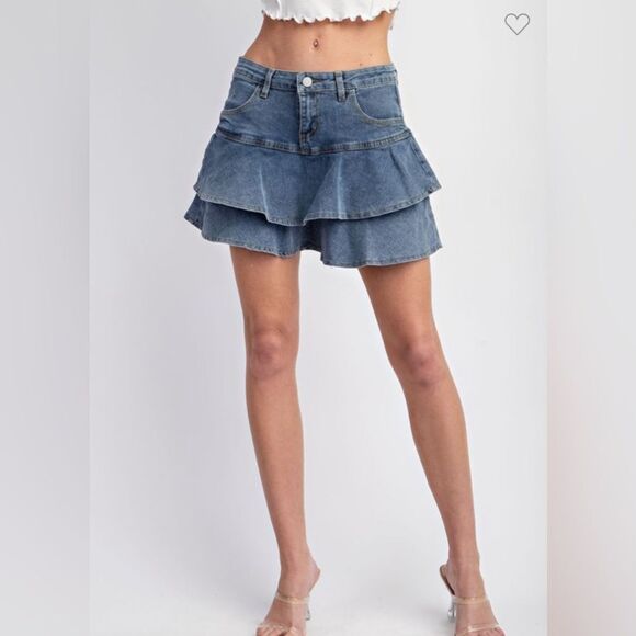 079. RUFFLE DENIM SKIRT WITH HIDDEN SHORTS!