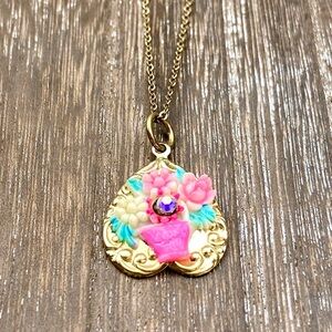 08 . Cute VINTAGE Flower Basket Rhinestone Heart Necklace