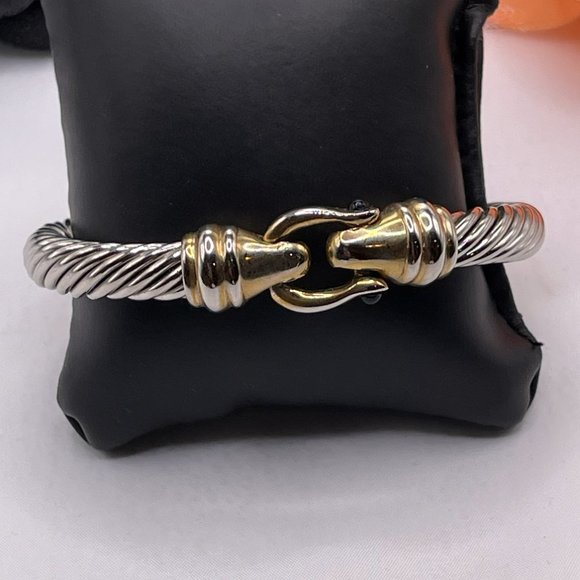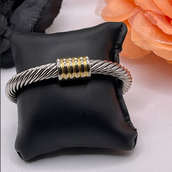 09.19.25_7- Twisted Cable Bracelet in Two-toned silvertone & Gold Magnetic Clasp