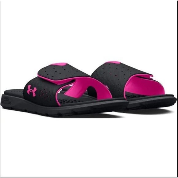 #0936 Under Armour Womens NWT Ignite 7 Pro Slides Black Pink Size 12
