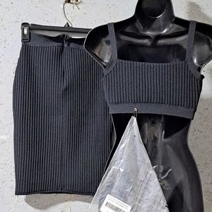 #097 Swank A Posh Cropped Bandage Ribbed Skirt Set