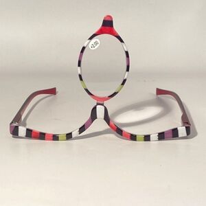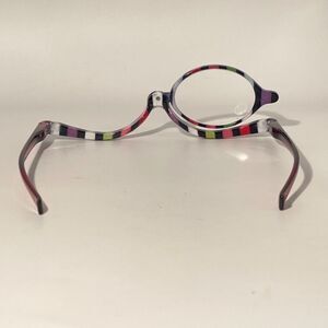 When you unpack your makeup glasses, you might be surprised. They have only one lens, it's intentional. These glasses feature a half frame and a single lens, allowing you to enhance one of your eye's vision, while applying makeup to the other. The open top portion gives you plenty of space to maneuver cosmetic tools. The lense is hinged, easily rotating from one side to the other side.