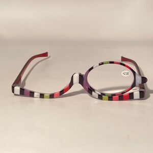 When you unpack your makeup glasses, you might be surprised. They have only one lens, it's intentional. These glasses feature a half frame and a single lens, allowing you to enhance one of your eye's vision, while applying makeup to the other. The open top portion gives you plenty of space to maneuver cosmetic tools. The lense is hinged, easily rotating from one side to the other side.