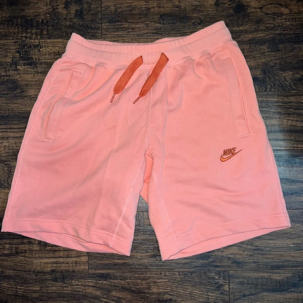 Salmon colored Nike sweatshirts. Never worn, just tried on. Shorts in flawless condition. For more pics and or questions, feel free to message me.