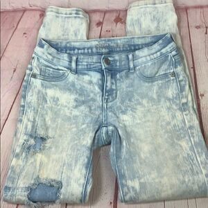 New York & company SOHO– ripped, destroyed super stretch, acid wash, mid rise, ankle legging, ripped skinny jeans in women’s size 0.