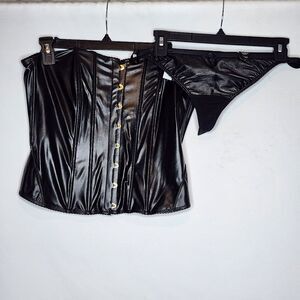 0X 12W Torrid Large Black Pleather Panty Set Lingerie Pinup Plussize Sweetheart neckline, hook and eye closure, corset seams, mid rise g string. NWT Torrid. Measurements for reference only approximately corset neck to hem 14" 12×4×14 wt 1lb