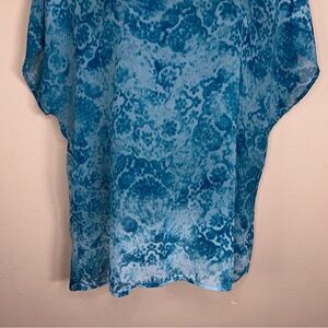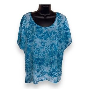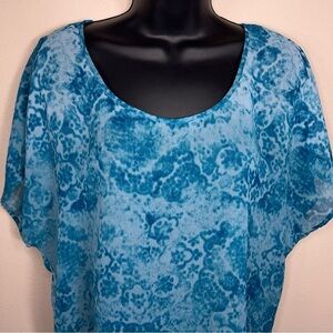 0X MAURICES BLUE WHITE LACE SEMI SHEER BLOUSE SHORT SLEEVE BOHO LIGHTWEIGHT