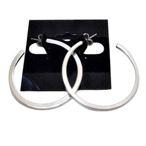 1 1/2" Avon Square Tube Hoop Pierced Post Earrings Silver Tone Vintage Open End