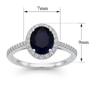 1 1/2 Carat Oval Created Sapphire & Diamond Halo Ring in Sterling Silver