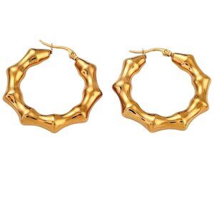 1 1/2 Inch 37mm Hoop Gold Tone Pierced Post Earrings