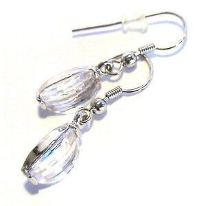1 1/4" Long Clear/White Faceted Cubic Zirconia Drop Silver Fish Hook Style Earrings - 3/8" wide.