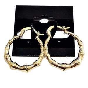 1 1/8 Inch 27mm Bamboo Hoop Pierced Post Earrings Gold Tone