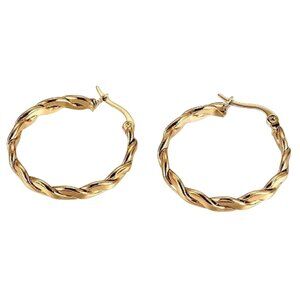 1 1/8 Inch 31mm Braided Hoop Pierced Post Earrings Gold Tone 3mm Wide Band