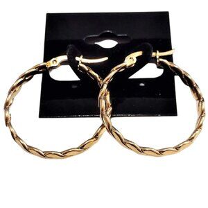 Twisted Flat Band Gold Tone Hoop Earrings