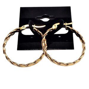 1 1/8 Inch 31mm Braided Hoop Pierced Post Earrings Gold Tone 3mm Wide Band