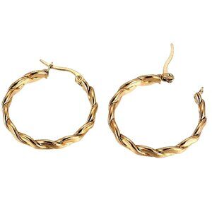 1 1/8" Twisted Flat Band Hoop Pierced Earrings Gold Tone Stainless Steel Hypoallergenic Thick Band