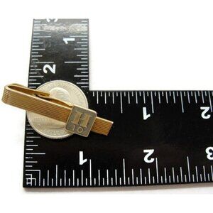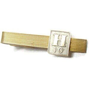 This unbranded, vintage 10-year "H" service award tie clip is a unique find. The emblem, crafted from 1/20 12kt gold filled metal, is attached to a 1 5/8" 10K gold tie clip.