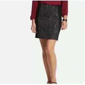 1 Ann Taylor Loft Black Curvy Fit Sparkle Tweed Paneled Straight Skirt 0
