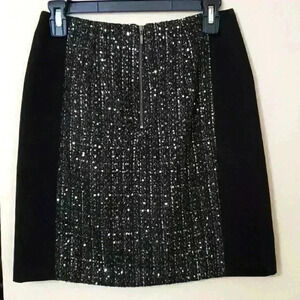 1 Ann Taylor Loft Black Curvy Fit Sparkle Tweed Paneled Straight Skirt 0