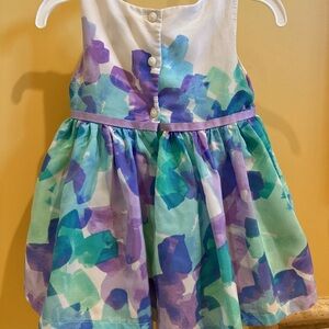 Charming sleeveless dress with a blend of blue, purple, and green. Perfect for formal and casual outings.