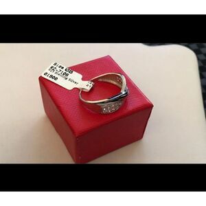 We were able to get one more of,this beautiful ring! This gorgeous band is perfect for everyday wear. It also looks great paired with a solitaire or other band ring. Done in 2.7 grams of .925 solid sterling silver and stamped for authenticity, it is high polished, and layered in platinum, has a ridged crossover center design and sparkles with a full carat of small round cut pave set stones. It is size 8.