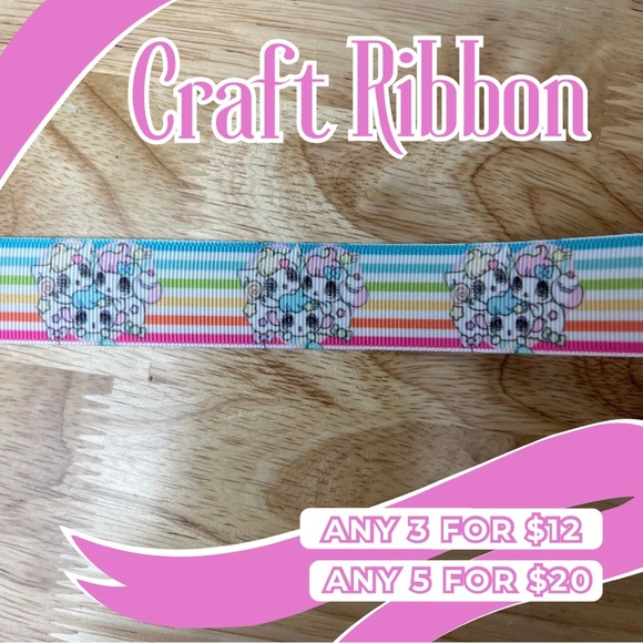 1" GROSGRAIN CRAFT RIBBON - 2 YARDS Cutie Cartoons, Rainbow Striped